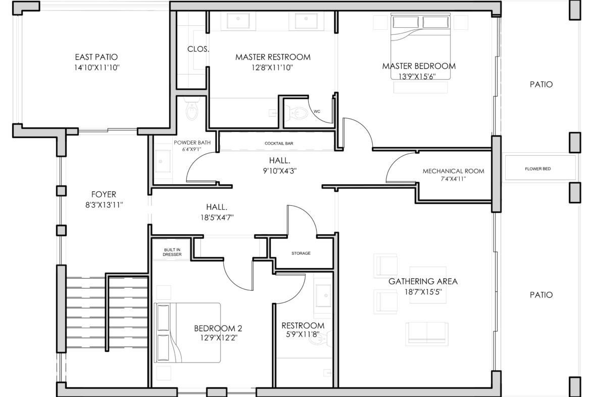 Second primary bathroom, ensuite bathroom, second bathroom, powder room and gathering room
