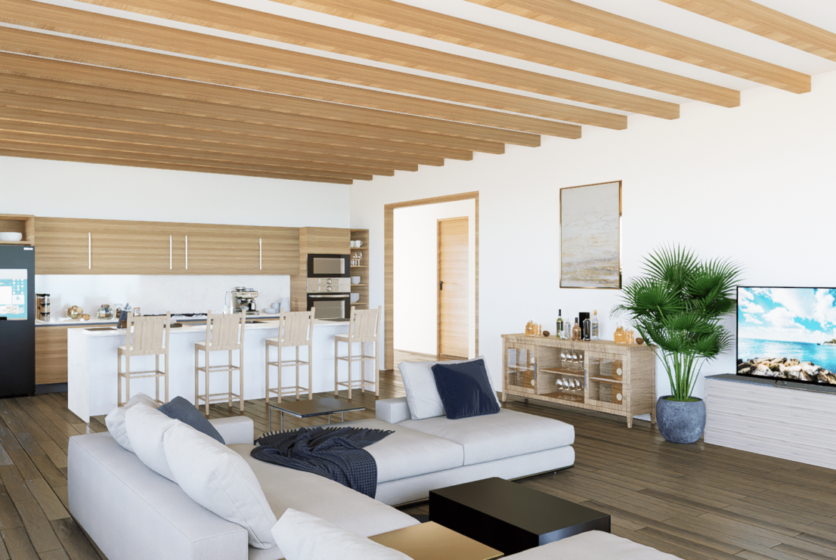 Enjoy an upstairs patio with a view of the community area, or relax on the master bedroom balconies and take in the breathtaking view of the Caribbean Sea. The living room and kitchen also offer views of the beach, with an infinity pool access and outdoor shower provide a luxurious experience.