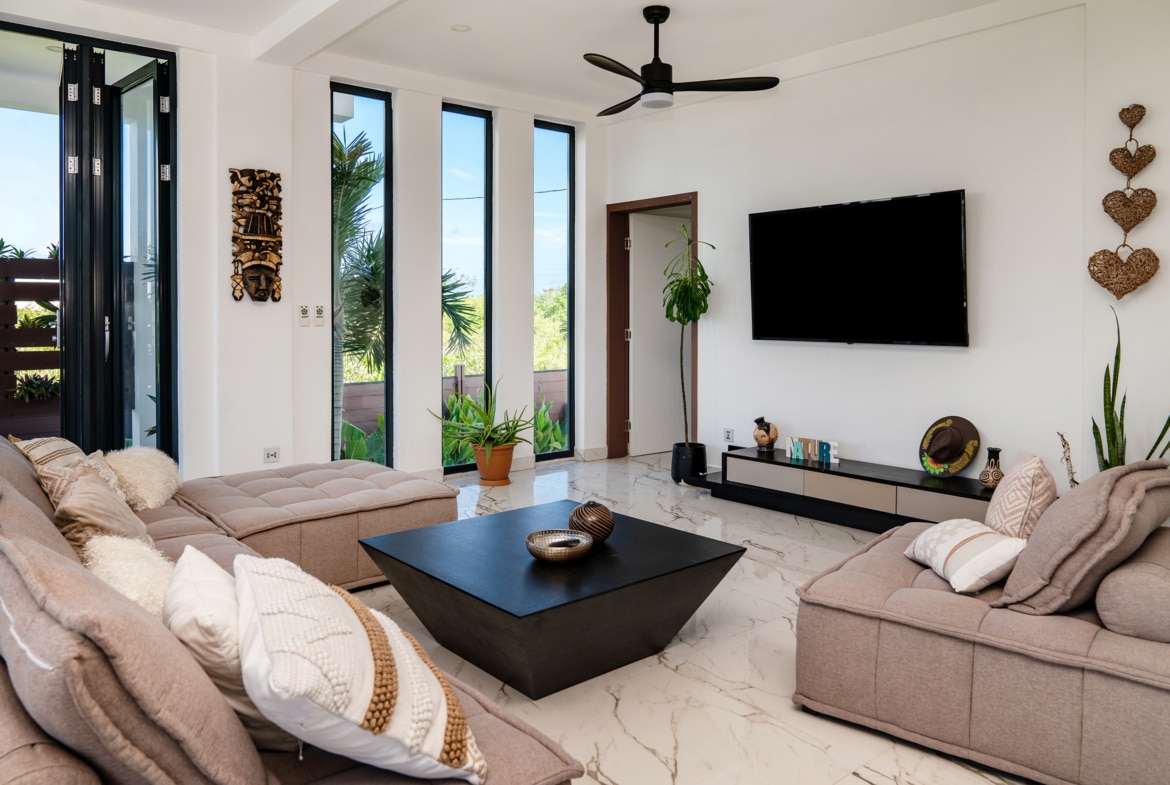 The home seamlessly blends contemporary design with Caribbean lifestyle, offering expansive outdoor lounge spaces, stunning pools, and a serene environment that makes it the perfect retreat.