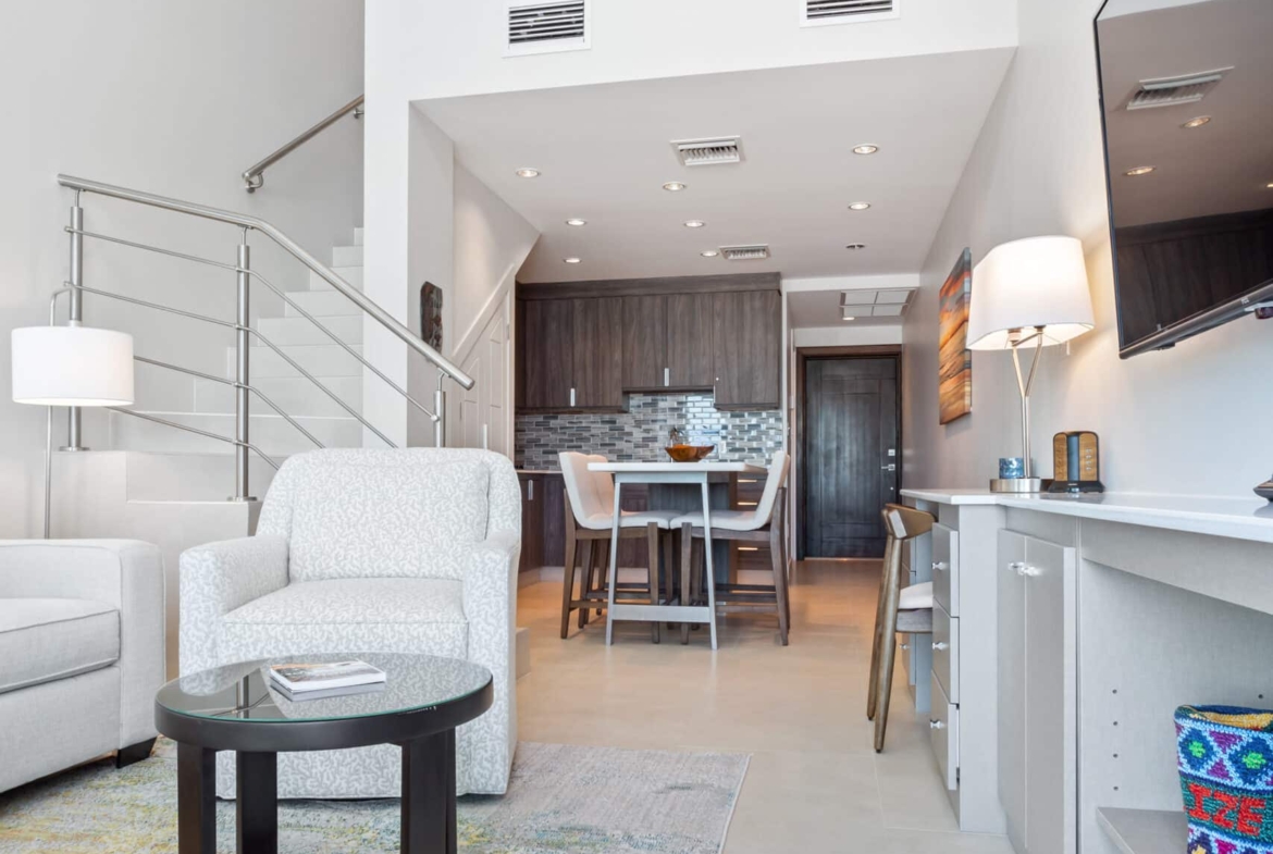 Waterfront Views: Floor-to-ceiling glass windows throughout the Loft provide uninterrupted views of the sparkling Caribbean waters, making this the ultimate in tropical luxury.
